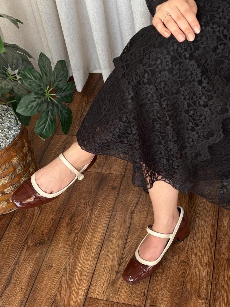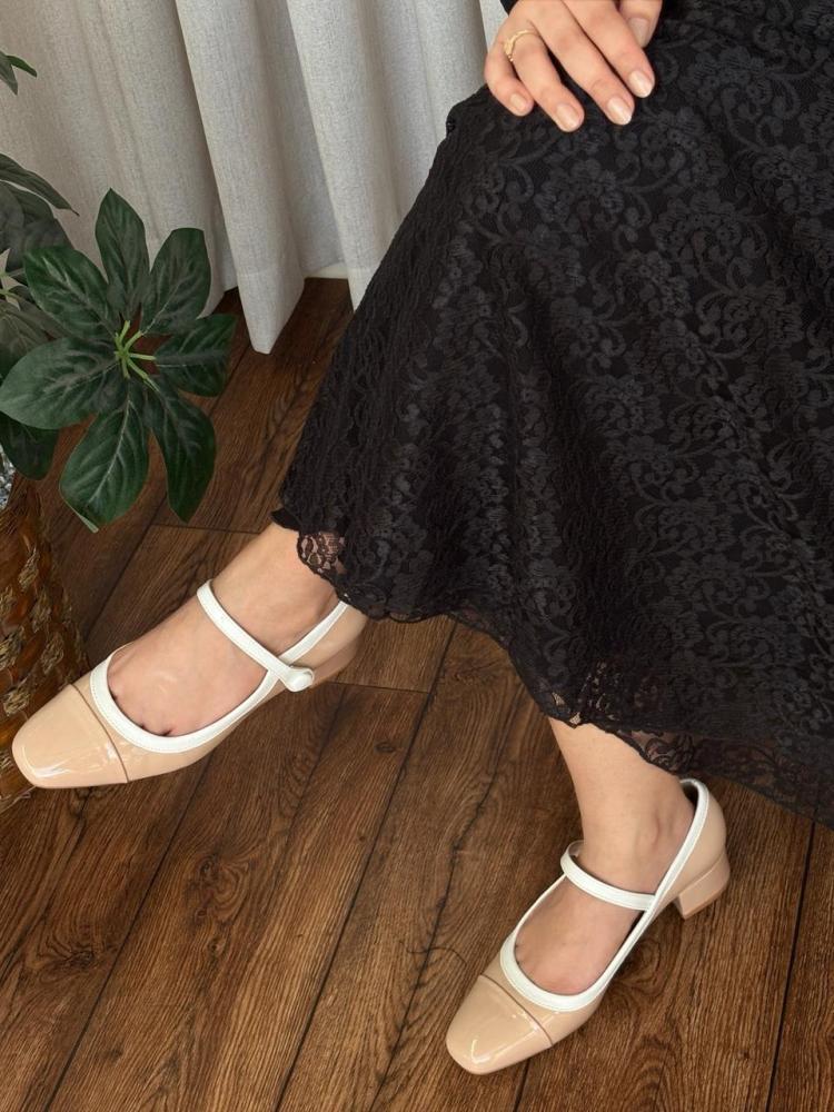 حذاء بكعب عريض، خيار مثالي لكل سيدة تبحث عن الراحة والفخامة مع لمسة كعب عريض مريح وكعب ميو ميو بألوان بيج وبرغندي أنيقة وعصرية.