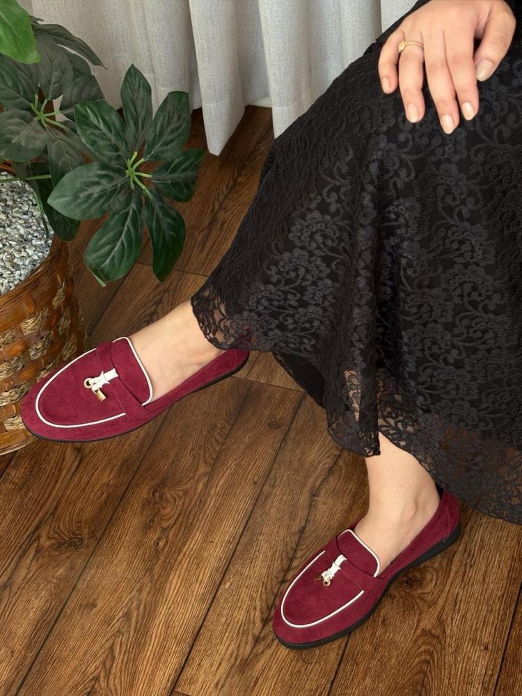 شوز لورو بيانا نسائي، خيار فاخر لكل سيدة تبحث عن الراحة والأناقة مع فلات شوز مريح بألوان بيج وبرغندي جذابة وعصرية.